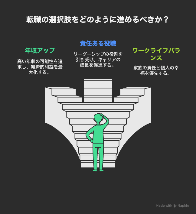自分の優先順位(収入・勤務時間・専門性・家庭時間など)を整理する